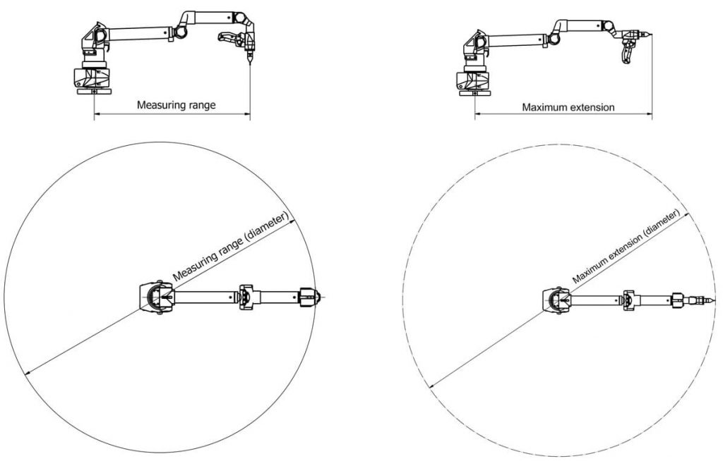 | R-EVO R/S-Scan | Measuring range (dia.) | Maximum extension (dia.) |
