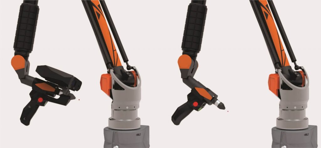 Thanks to the autojoint mount, easy and quick change between laser scanner and touch probe. The laser scanner, however, include an integrated touch probe which can be used without removing the scanner.